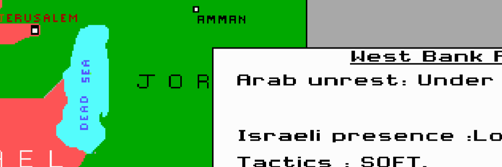 I wrote Conflict: Middle East Political Simulator which had the silly idea of Israel starting a nuclear war